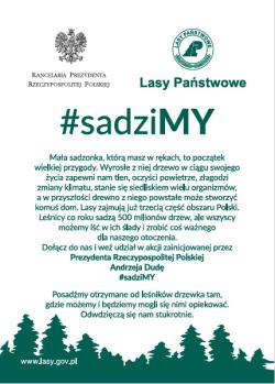 Po raz kolejny wspólnie uczestniczymy w akcji zainicjowanej przez Prezydenta Rzeczpospolitej Polskiej Andrzeja Dudę #sadziMY, która w tym roku przypada na dni 30 września (czwartek) oraz 1 października (piątek).